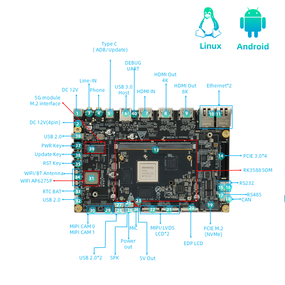 K RK3588 SBC فوائد: راسبیری PI مصنوعات کے مقابلے میں ، RK3588 ڈویلپمنٹ بورڈ اعلی کارکردگی ، زیادہ سے زیادہ انٹرفیس ، اور زیادہ طاقتور ملٹی میڈیا پروسیسنگ کی صلاحیتوں کی پیش کش کرتا ہے ، جس سے یہ AI اور صنعتی ایپلی کیشنز کے لئے زیادہ موزوں ہے۔